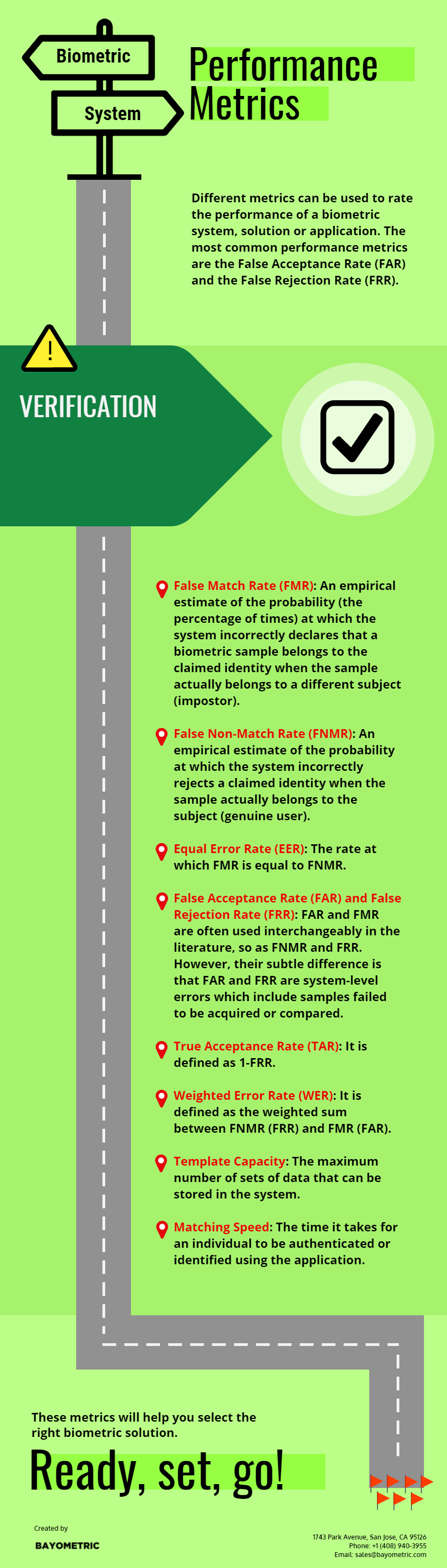 The choice of which metrics to use to assess the accuracy of a biometric system will depend on the specific application. For example, in a high-security application, a low FAR may be more important than a low FRR. In a low-security application, a low FRR may be more important than a low FAR.
