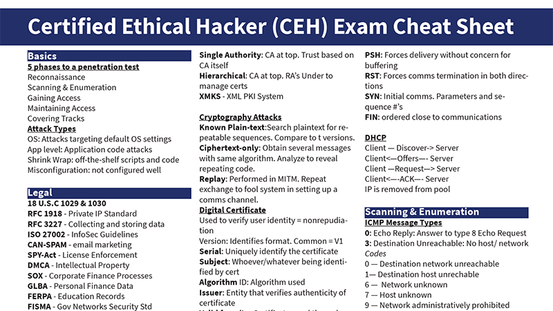 This is the small (and I hope) useful cheat sheet for the CEH V8 certification.