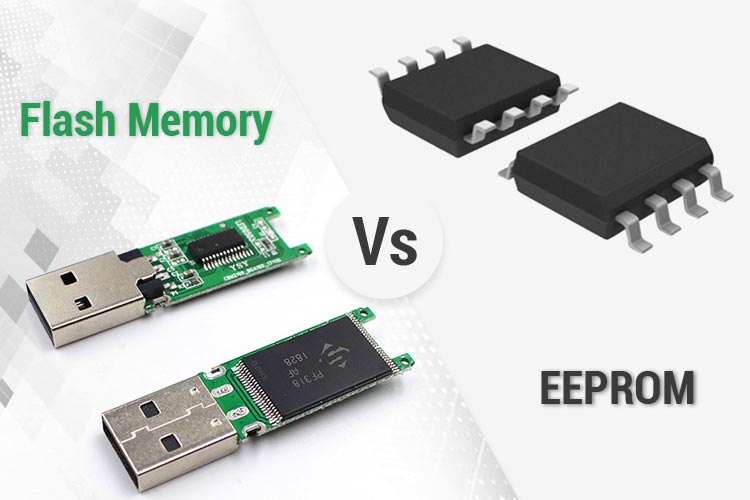 - Flash is used when large amounts are needed, while EEPROM is used when only small amounts are needed.