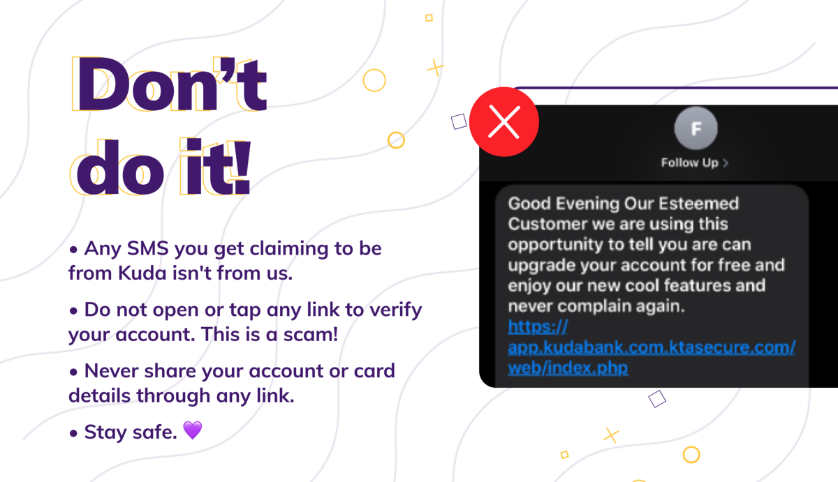 Is there something you’re not sure of? Do you have a funny feeling about an offer you got from a so-called Kuda? Please, ask us before you take any other action.