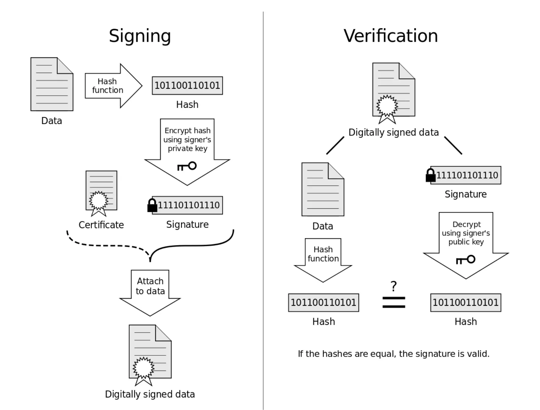 - Digital signature alone only authenticates and ensures integrity — it does not encrypt the content.